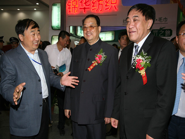 中國紡織工業(yè)聯(lián)合會原會長王天凱(右一)與公司董事長王力民(左一)親切交談